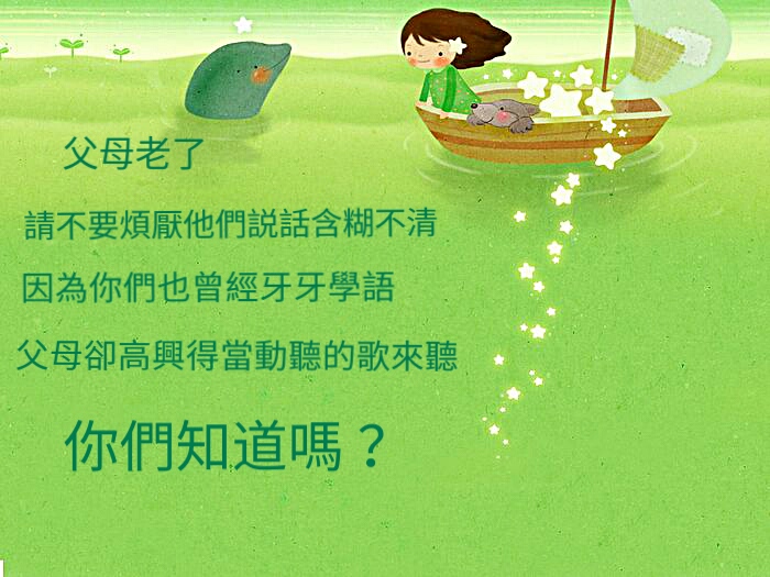 因為你們也曾經牙牙學語,但是你們父母卻高興得當動聽的歌來聽。