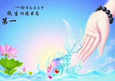有一天到一家小超市买菜,当我在挑选的时候,突然旁边的水槽里有一条福寿鱼跳了出来,在地上打滚,嘴巴一张一合的,感觉它在向我求救。我怔住了,怎么又发生这种事?我记起师姐的话,内心在盘算附近哪里可以放生。我要求老板娘用大袋子装满水好让它有足够的活动空间,由于外面下着大雨,我只能把它买回家,先养在水桶里。
