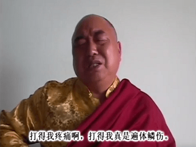 2003年剛第一次出獄的蔣貢康活佛(見圖),躲到了泰國。他面對鏡頭悲苦交加的說:“看我還是不說假話,(深圳公安人員)就把我倒吊起來灌辣椒水,當辣痛到鼻孔、眼睛、喉腔,不但痛而且無法出氣,直到心肝,板命、疼痛無比到昏迷。接著又用水潑醒,又用一種藥水針打在我肚子上,肚痛難忍、八苦交加、從麻木昏昏沉沉心脹沒有知覺,再用水把我潑醒。昏昏沉沉黑屋不知多少天,昏迷痛苦無法說。昏迷中,倆人要我蓋手印,我說我沒有說、我不蓋手印。“你前幾天說的”一人把我手拉蓋手印,我無力反抗,他們又要我簽字,說簽了字就放我了,我想手印都蓋了,只好簽了字,他們出門哈哈大笑。