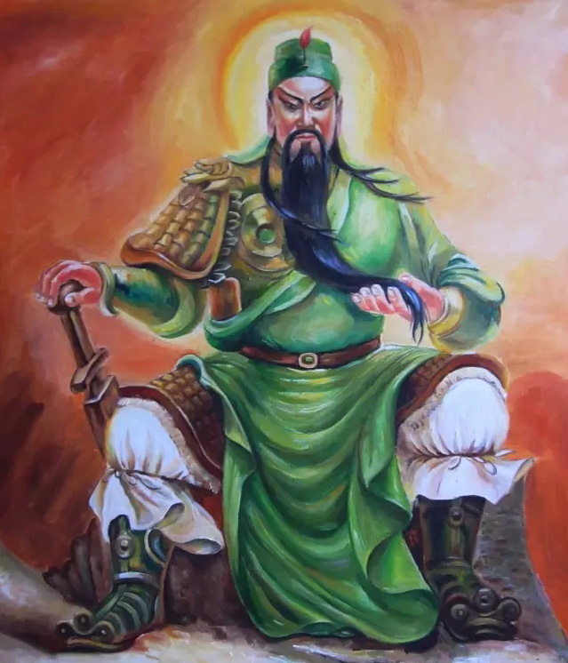 关羽,(160年至219年),字云长。身高九尺,须长二尺,丹凤眼,卧蚕眉,面如重枣,手提八十二斤重的青龙偃月刀(又名冷艳锯),胯下赤兔马日行千里,夜行八百,勇冠三军。取上将首级犹如探囊取物。当时能与关羽交战十个回合的上将寥寥可数。各位看官,何谓一回合?古代战争,敌我双方列阵,双方武将在阵前单挑,策马冲向对手。接近时,你来我往地相互攻击,这样为一回合。然后调转马头,再继续第二回合的厮杀。关羽单挑战无不胜。「温酒斩华雄,过五关,斩六将。斩颜良、诛文丑」,青龙偃月刀的刀下亡魂不计其数,令敌人闻风丧胆。武功盖世的关羽位列蜀国五虎上将之首。