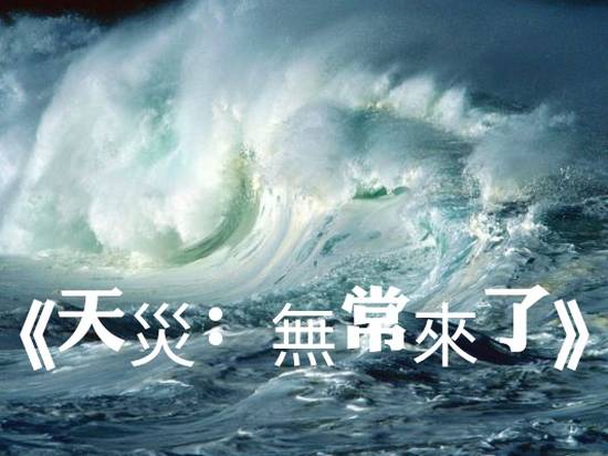 天災,帶給人類很大的災害,也無處可躲。人們辛辛苦苦地忙碌一生,建立的家園及財富,一夜之間便付之東流,讓人徬徨無助。錢財乃是身外之物,家園也可以重建,但人死後卻再不能復生了。傷亡者的家屬,更是痛入心扉,傷心欲絕。人生無常苦短呀!