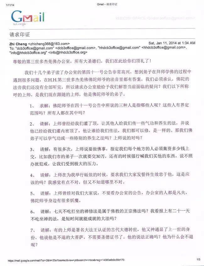 对于佛弟子智诚等人的来信,办公室现根据所提问题的编号顺序,逐一给予印证回覆,请大家在阅读