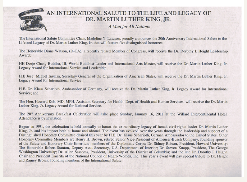 第三世多杰羌佛獲得的馬丁路德金“國際服務及領袖獎”